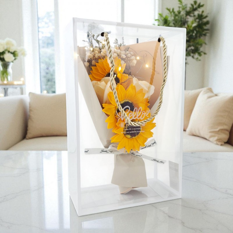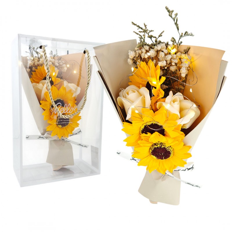 Bukiet zapachowych kwiatów mydlanych w pudełku na prezent, świecące LED BUK15