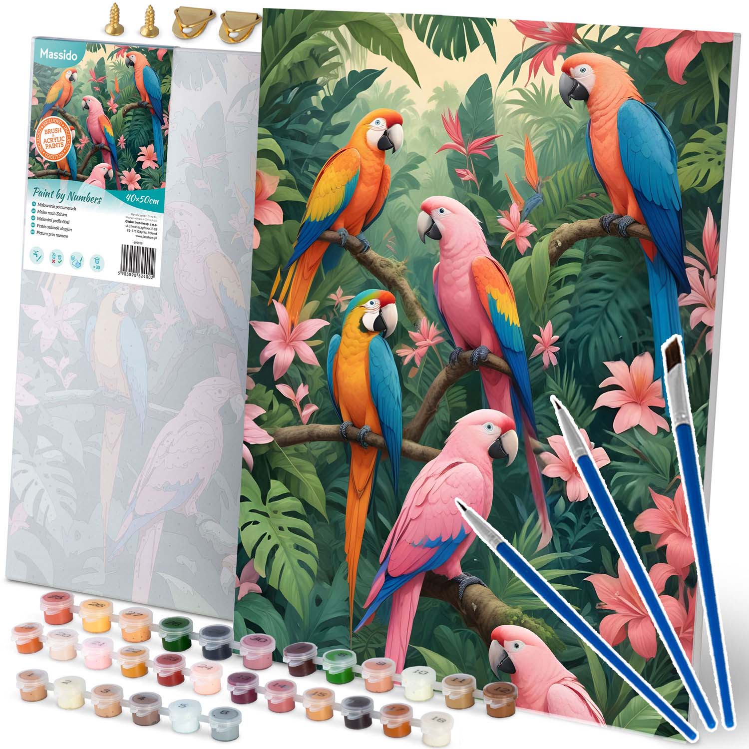 Obraz do malowania po numerach 40×50 cm Massido Papugi