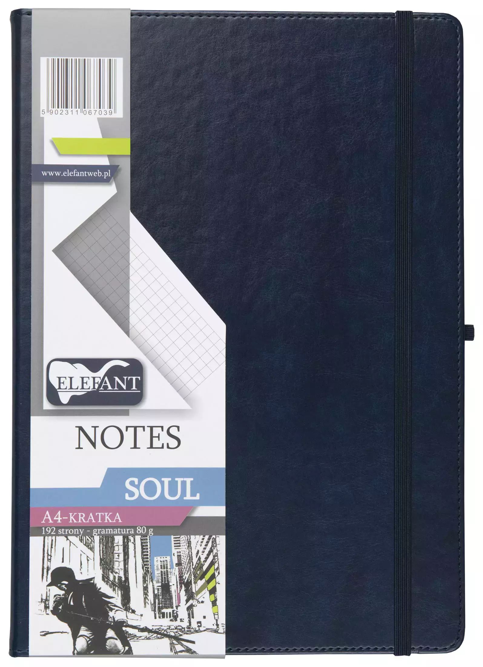 Notes wykonany jest z wysokiej jakości materiału, występuje w formacie A4 o wymiarach (297×210 mm),Notes posiada: elastyczną gumkę na długopis, kopertę w kolorze kremowym z wytrzymałego papieru, gumkę spinającą cały notes, twardą oprawę z możliwością grawerowania lub tłoczenia loga, zaokrąglone rogi oprawy,192 strony w kratkę, występuje w kolorze granatowym z granatową gumką, notes przeszyty jest delikatną nicą w kolorze granatowym